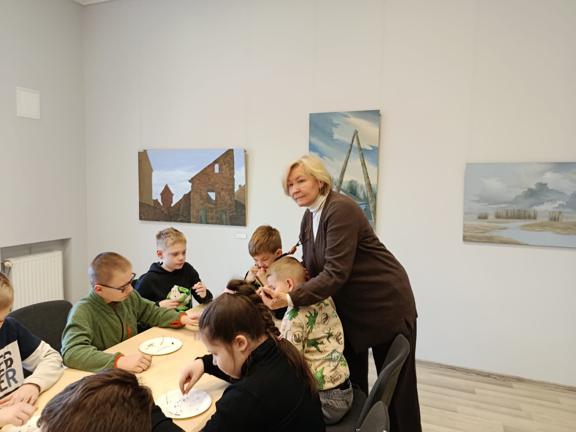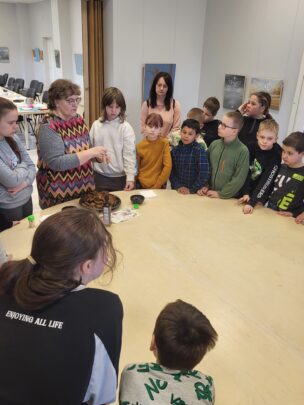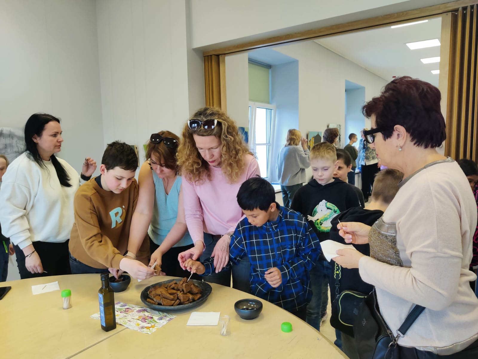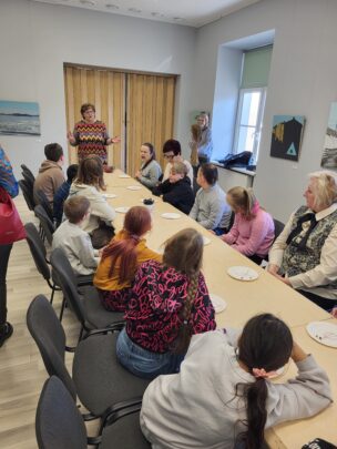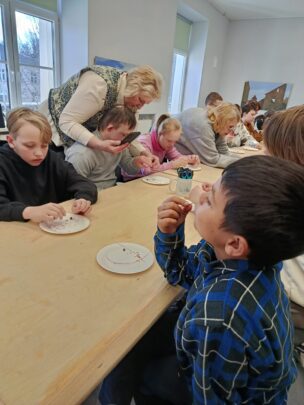 Nodarbības noslēgumā mūs gaidīja sirsnīgs cienasts – visi tika aicināti nobaudīt svaigi ceptu maizīti ar linu eļļu. Tas bija brīdis, kad bērni varēja sajust linu vērtību ne tikai darbos, bet arī tradicionālajā virtuvē.
