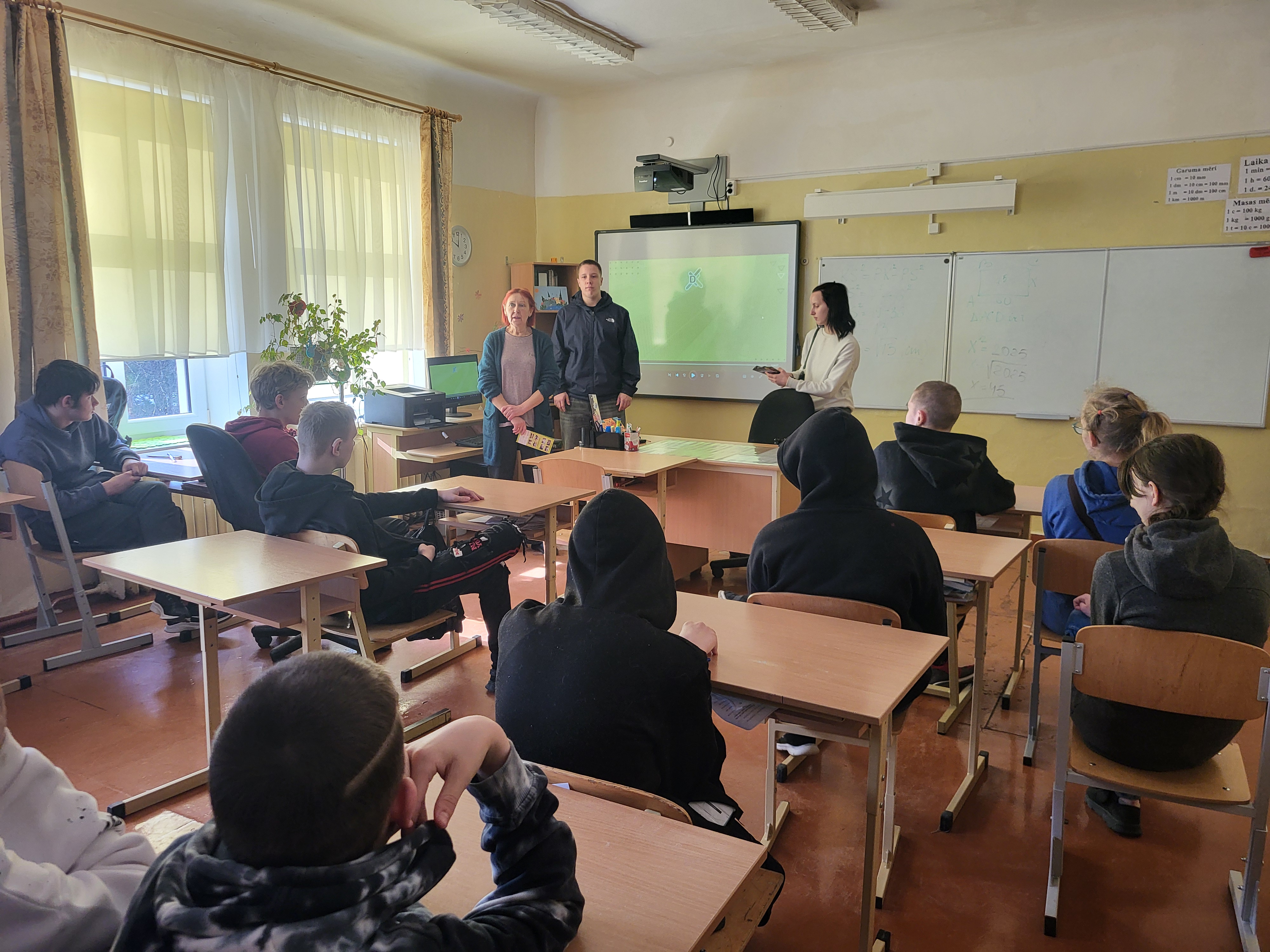 Studenti jaunieši dalījās pieredzē un stāstīja mūsu skolēniem, kā top mācīšanās process, prakse un kā viņi izvēlās savu jomu.