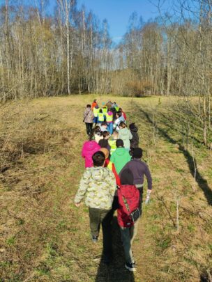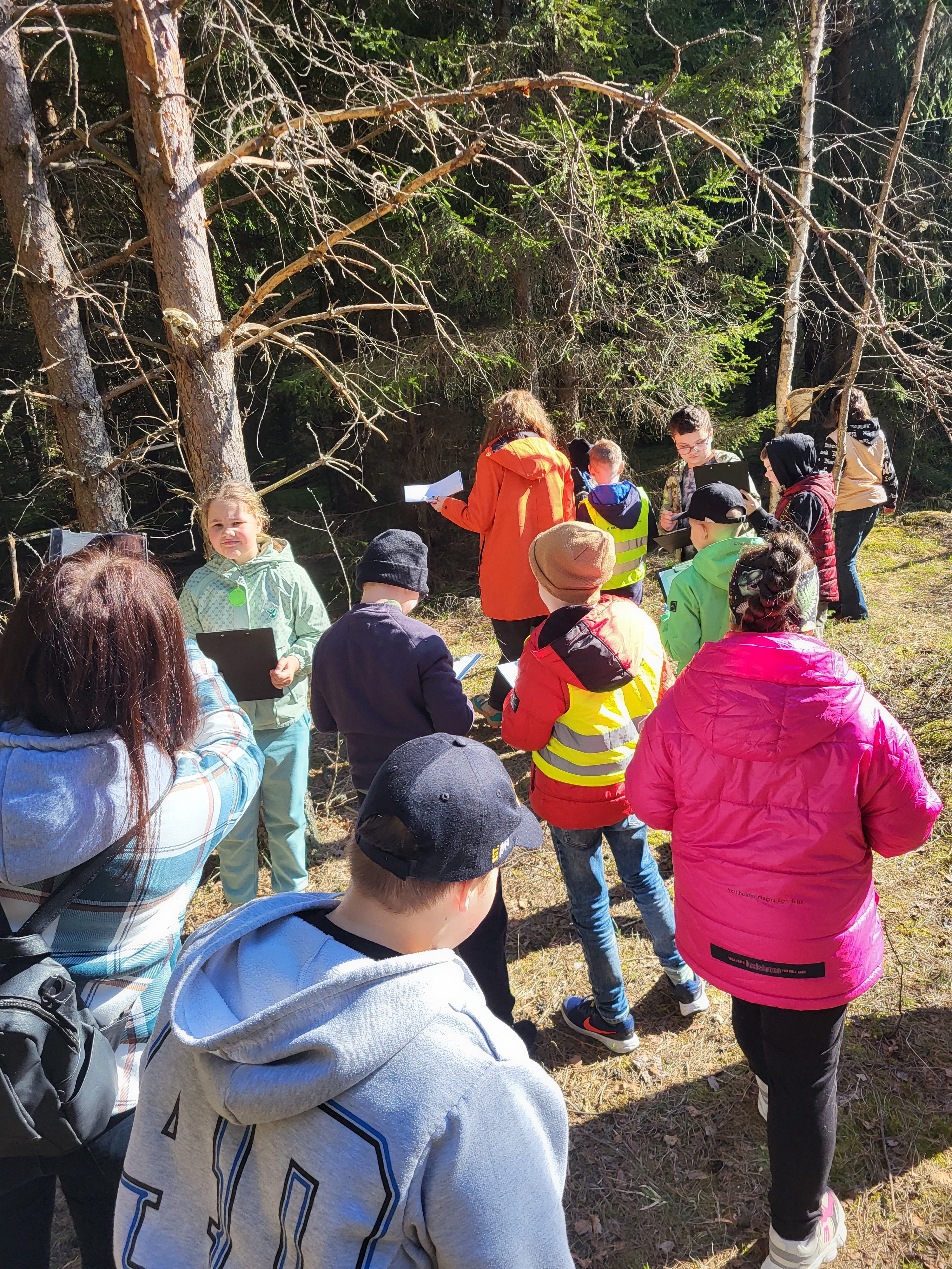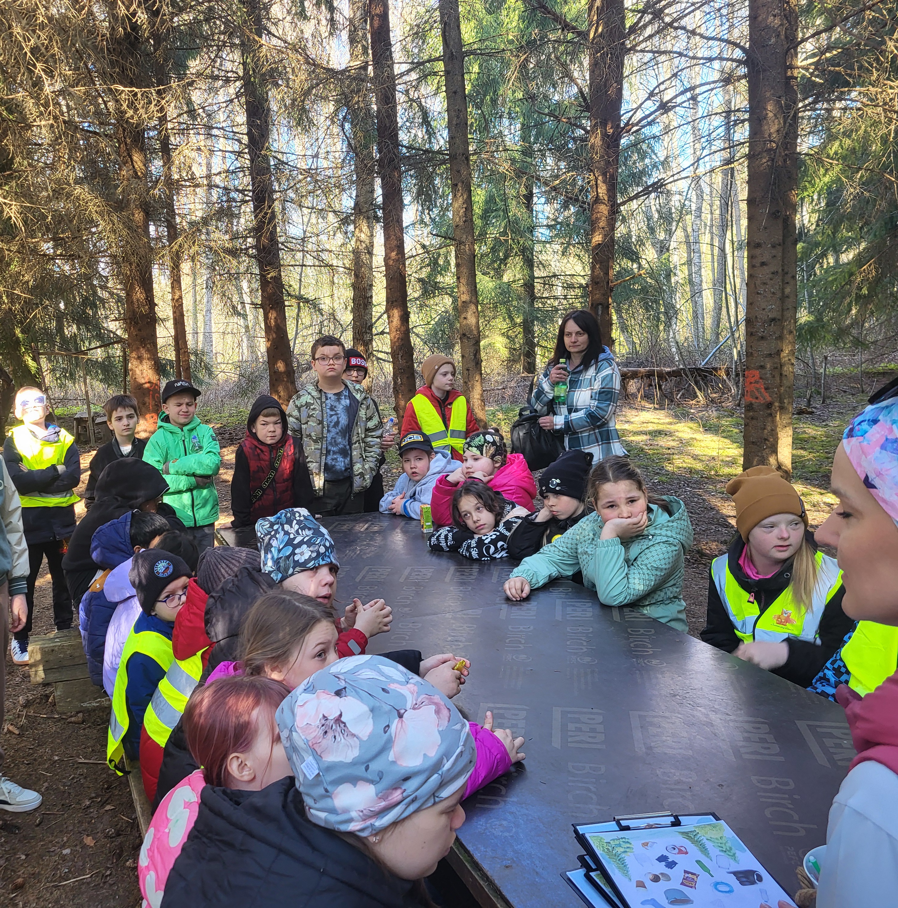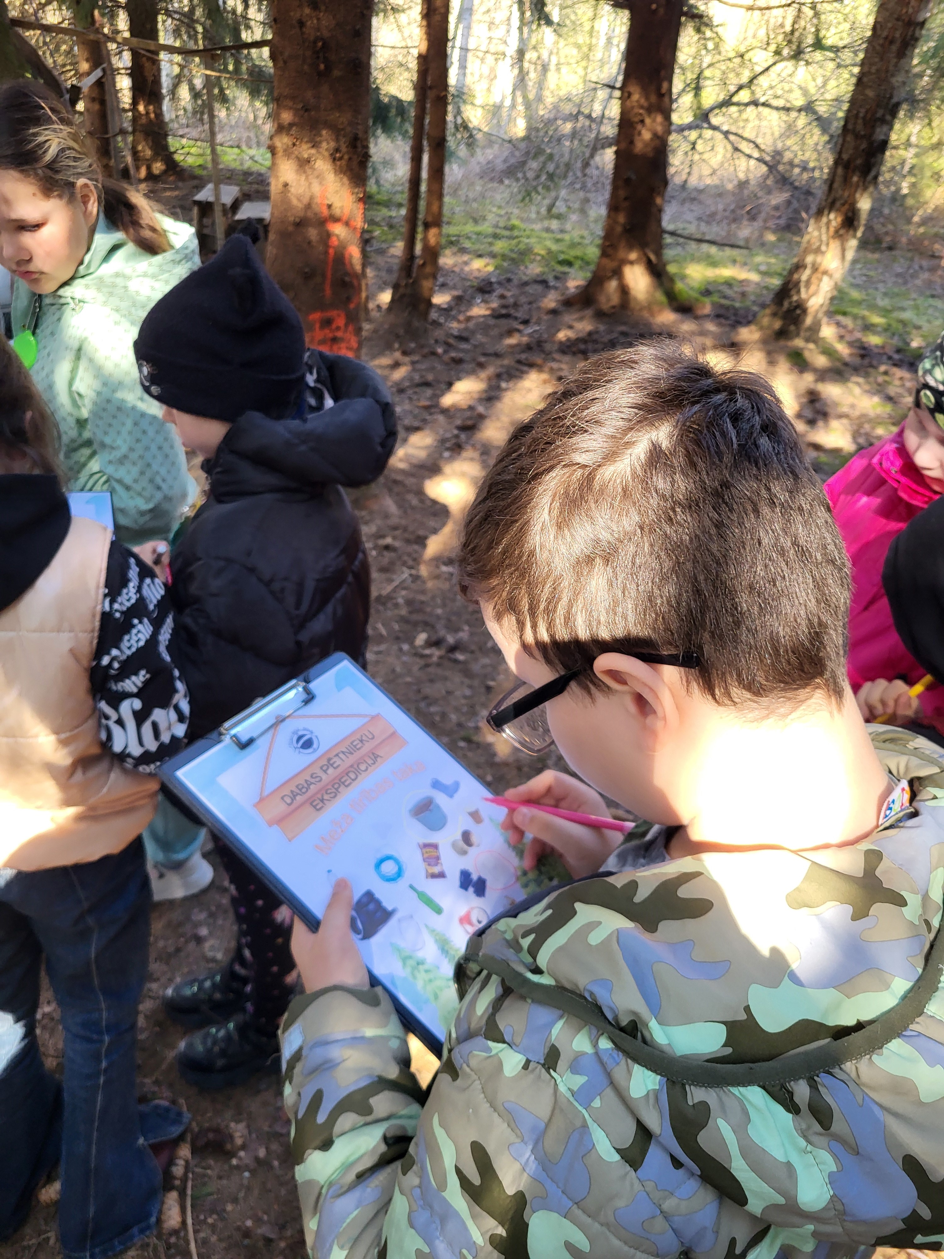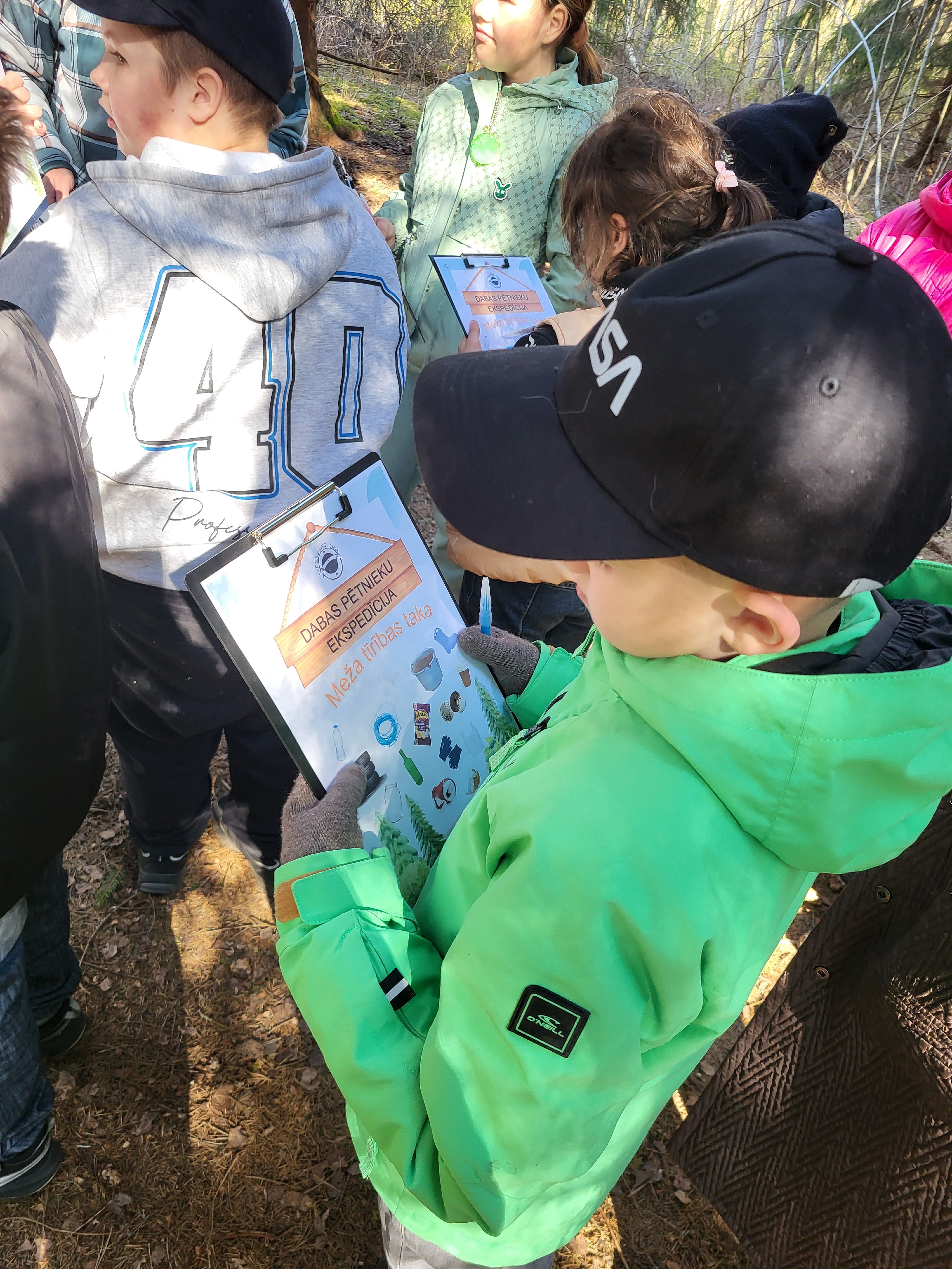 Skolēni no 2. līdz 6. klasei sadalījās komandās un devās meža ekspedīcijā. Divas dažādas trases — “Dabas dārgumu taka” un “Meža tīrības taka”.