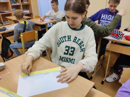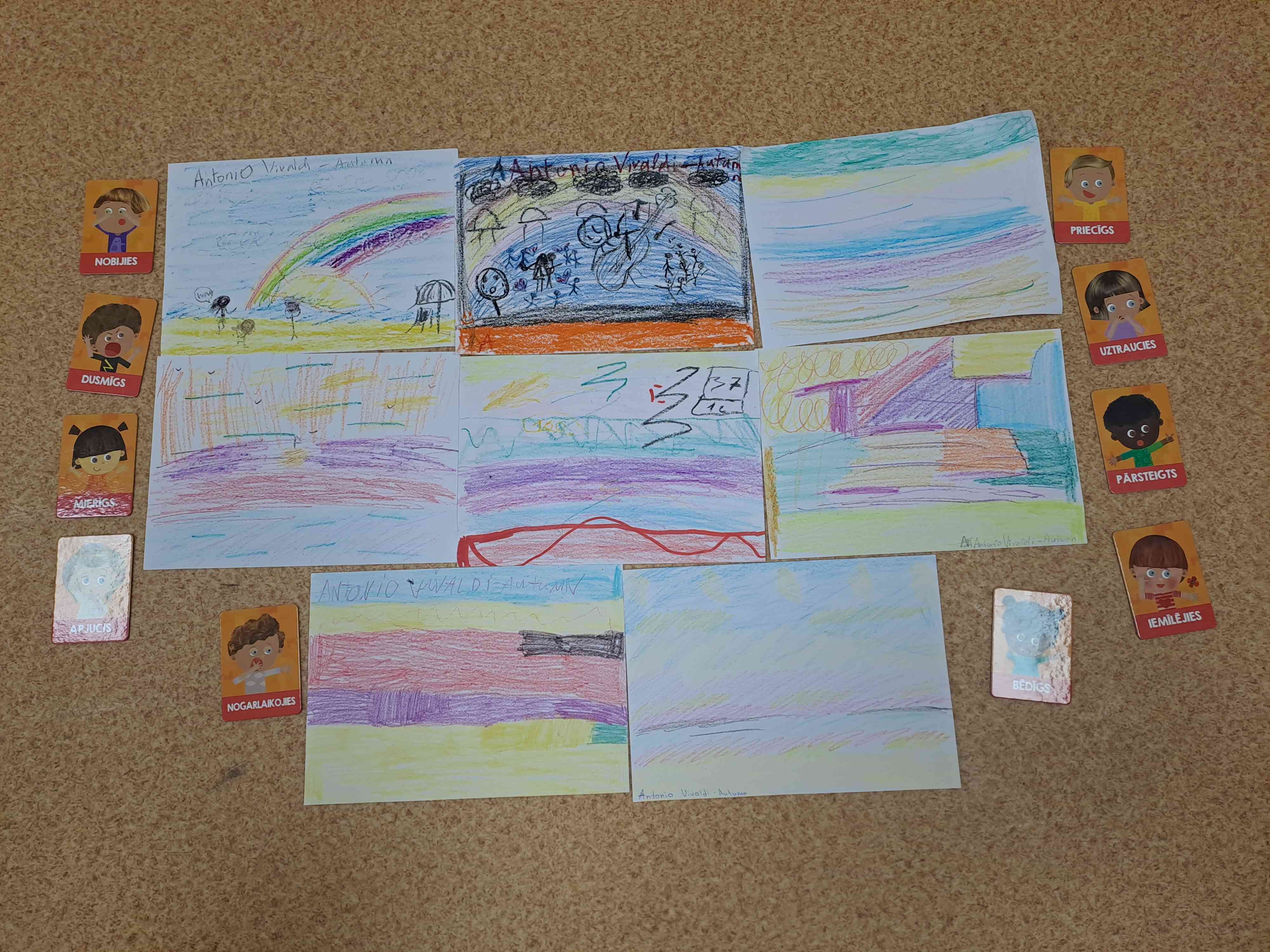 Mūzikas stundās skolotājas Olgas Išimovas vadībā skolēni klausījās mūziku ar atšķirīgu tempu un raksturu — priecīgu, skumju, enerģisku. Balstoties uz dzirdēto un izjūtām, viņi radīja zīmējumus, kuros atainoja savu emocionālo reakciju uz mūziku. Šī aktivitāte veicināja bērnu spēju vizuāli pārvērst skaņu krāsās un formās.