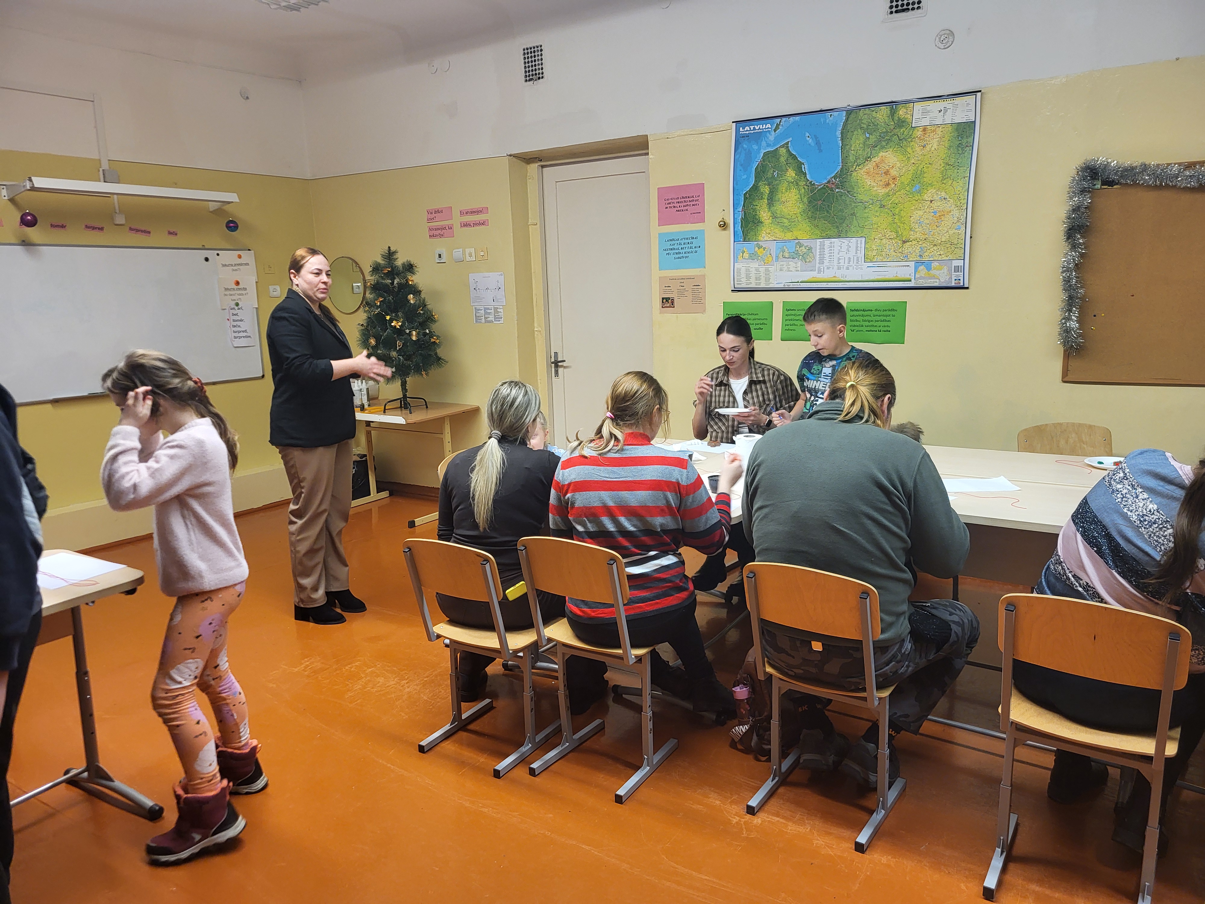 Sociālā pedagoģe N.Hvostova piedāvāja jautri paspēlēties ar metaforiskām kartēm. Pasākuma dalībnieki izbaudīja Ziemassvētku noskaņojumu ar mandarīnu, cepumu un tēju aromātiem.