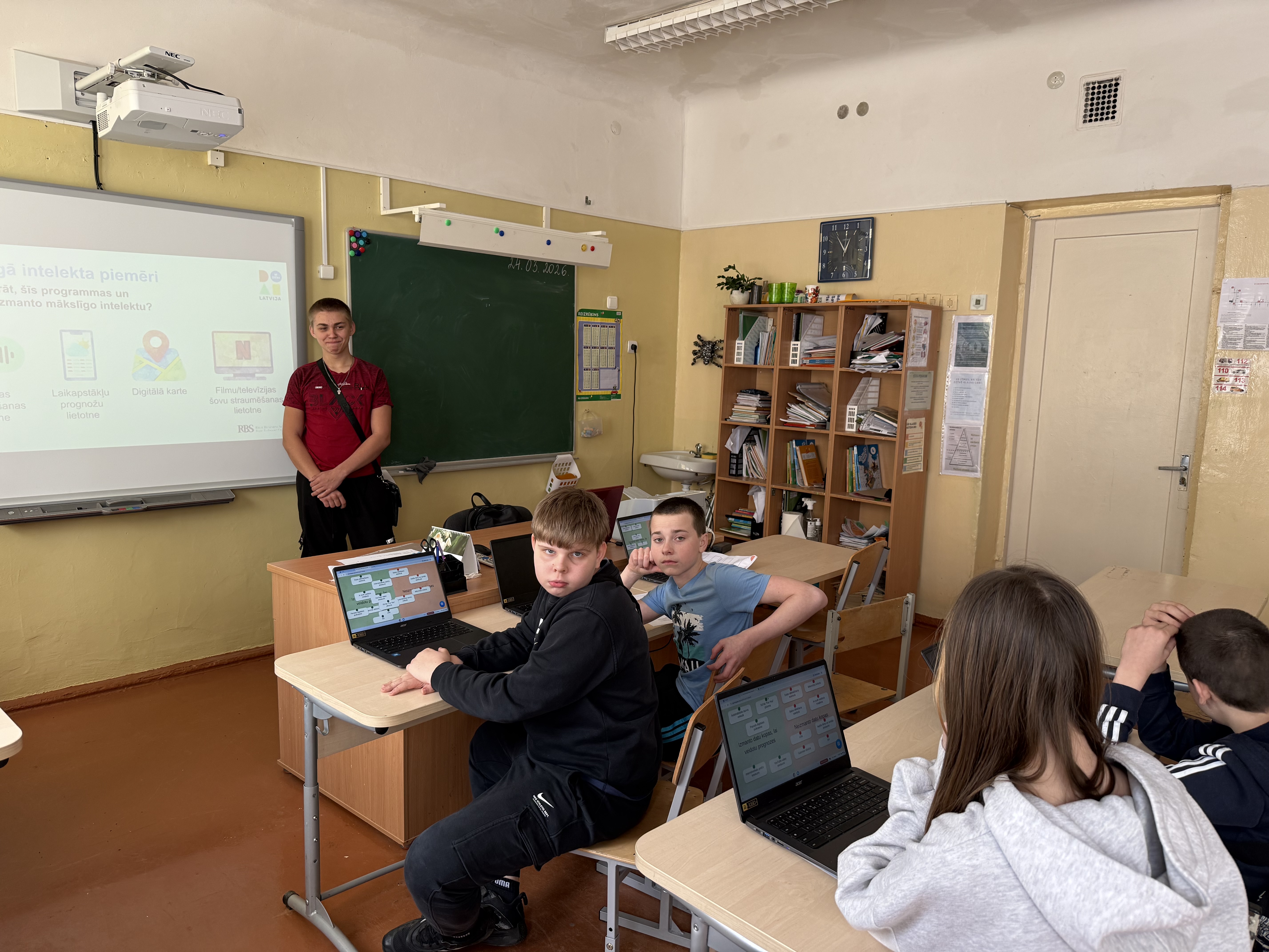 Nodarbības laikā skolēniem bija iespēja ne tikai klausīties un uzzināt par MI pamatiem, bet arī aktīvi darboties. Izmantojot saņemtos programmas materiālus – prezentācijas, testus un darba lapas – skolēni analizēja dažādas tehnoloģijas, izvērtējot, vai tās izmanto mākslīgo intelektu vai neizmanto. Katrs uzdevums rosināja domāt kritiski un pamatot savu viedokli, kas ir būtiska prasme mūsdienu digitālajā vidē.