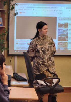 Anastasija kopā ar karjeras konsultantu novadīja klases stundas 8.a, 6.a, 7.c, 1.,2.B arodklasēm, stāstot par iespējām Jaunsargu interešu izglītībā, kādi ir nosacījumi, cik nopietnam jābūt un disciplinētam, kādas ir sankcijas. Cik svarīgi kopā pavadīt laiku nometnes, cik lielu iespēju dot mācības kļūst par pieaugušu un atbildīgu cilvēku, par prasmēm cienīt savu komandu un atbildēt par citiem.
