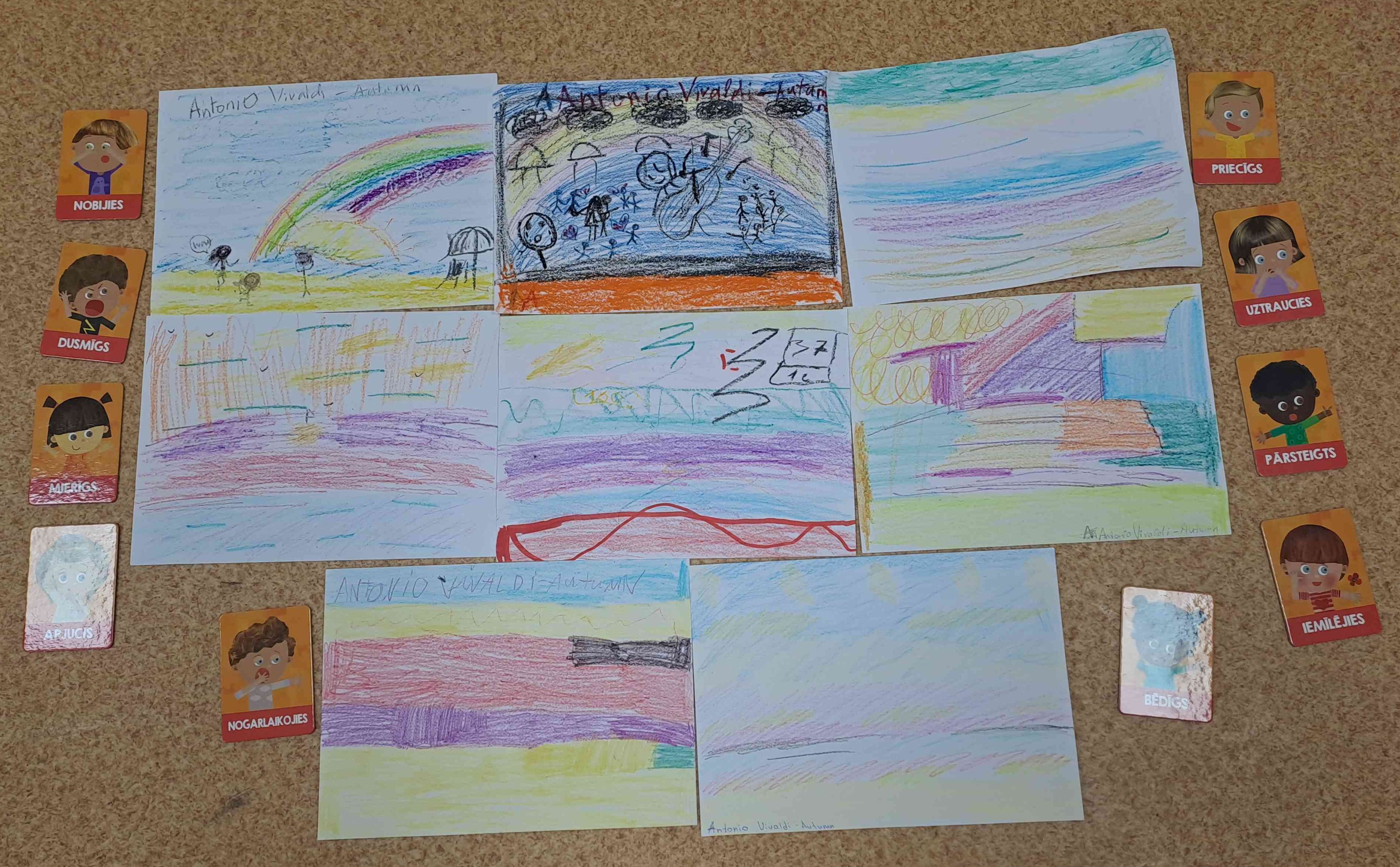 Skolēniem tika piedāvāta Antonio Vivaldi mūzikas cikls Četri gadalaiki, kur trešā daļa ir Rudens. Mūzika ir pilna dzīvības, prieka un miera sajūtas. Vivaldi mūzika ir mūzika, kas stāsta bez vārdiem. Katrs skaņu vilnis attēlo dabas skaistumu un cilvēka izjūtas dažādos dzīves posmos – gluži kā pati daba mainās ar laiku. Bet ko sadzirdēja skolēni, jūs varat ieraudzīt viņu zīmējumos.