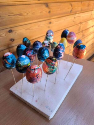 Radošajās darbnīcās skolēni izpaudās jo īpaši – no krāsainām lupatiņām meistaroja pirkstiņzaķus, kā arī īpašā aprīkojumā ar speciālām ūdenskrāsām katrs varēja nokrāsot dekoratīvo olu. Visus savus radošos darbiņus skolēni ar prieku paņēma līdzi uz mājām.
