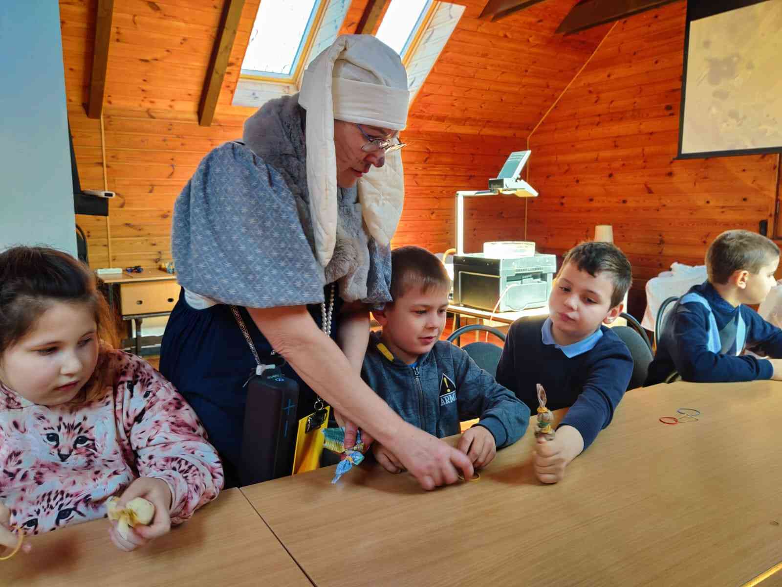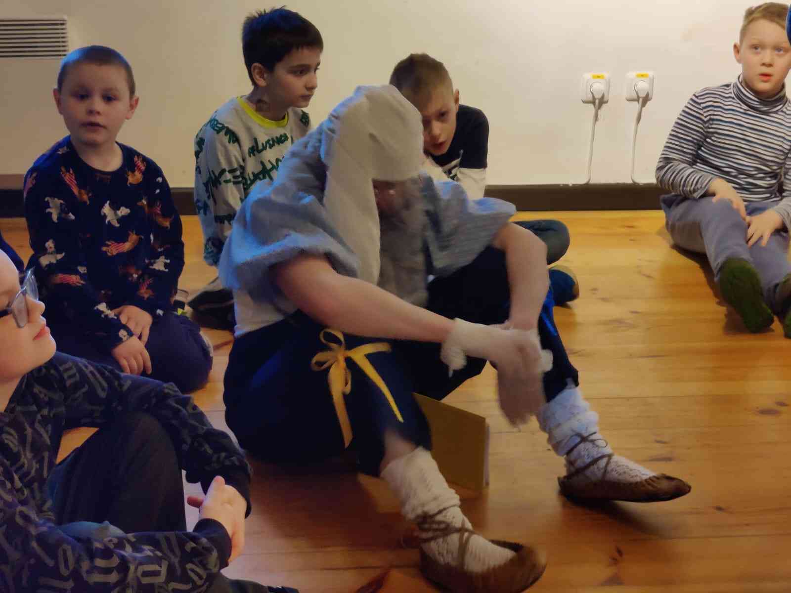 Raiņa mājā mūs sagaidīja jautrs Lieldienu zaķis – muzeja vadītāja Inese Baravika. Zaķa pavadībā, skanot jautrām bērnu dziesmām, skolēni spēlēja dažādās spēlēs un iesaistījās tradicionālajās Lieldienu aktivitātēs. Bērni klausījās interesantus stāstus par J.Raiņa bērnības dienām šajās mājās, tādējādi iepazīstot latviešu kultūras mantojumu un tradīcijas.